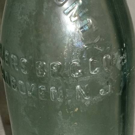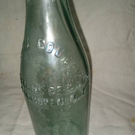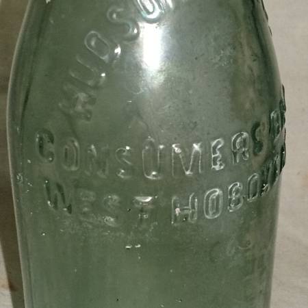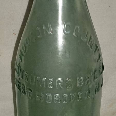 PRE-PROHIBITION Antique glass bottle with embossed lettering that reads "HUDSON COUNTY CONSUMERS BRG. CO.