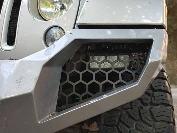 ALL-Silver with matching body-color-painted heavy steel bumpers (front is a $1800 FabFours Vengeance and rear is $400 Clamber), sidesteps, side mirrors, even wheels are matching silver.