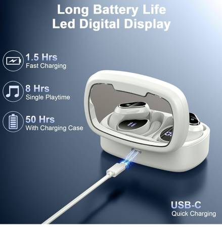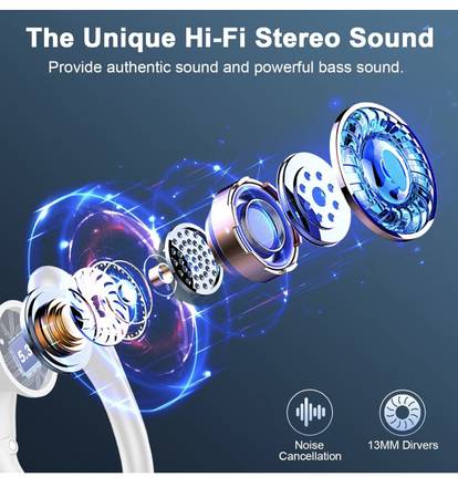 Poounur Q78 Wireless earbuds feature Hi-Fi Stereo Sound Quality, Bluetooth 5.3 technology, and a long-lasting battery life of up to 50 hours. They also have a comfortable and secure-fit design, IP7 waterproof rating, and fast pairing with one button control.