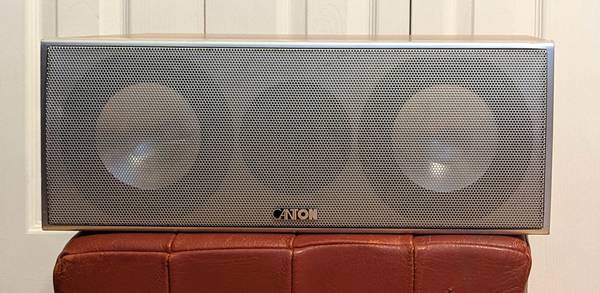 Incredibly sounding center speaker by German speaker maker Canton that sounds and looks so good it had to be imported from Europe! Features metal grills. Missing one of the knobs, but that presents...
