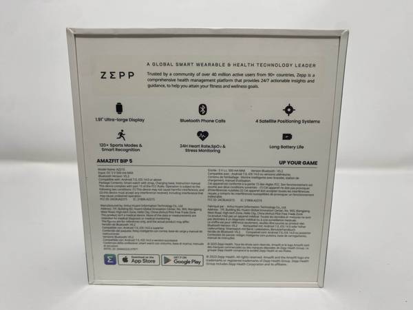Go bigger and smarter with the new Amazfit Bip 5 smartwatch. From fitness & outdoor sports to fun apps and games, this digital watch is great for adult men, women, and even kids. Along with its super large screen, this smartwatch supports Bluetooth calling and is compatible with Apple, Android, or other mobile devices. The smart features of the Amazfit Bip 5 smartwatch are powered by the Zepp OS 2.0, which provides access to a rich ecosystem of more than 70 fun apps and games and enables the long battery life needed for 24-hour health monitoring. Get active with a huge choice of 120+ sports modes from running, strength training, and gym exercises to outdoor hikes and swims, and enjoy GPS tracking from 4 satellite positioning systems.