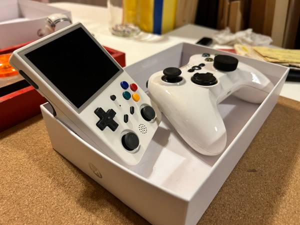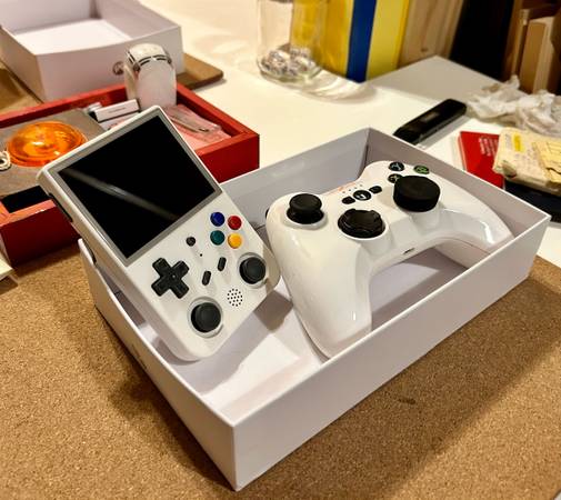 Hi y’all up for sale is a RG353V the higher end top notch frame rate emulator by Anbernic. Includes the box, and is basically mint. It includes an extra TF card upgrade straight from the factory purchased a couple years ago quality is amazing. Included more than 20,000 games at least. Systems I secifically paid extra for were: Dreamcasts integration, so can play all games, GameBoy colour, PlayStation and all the other systems before going back to the commodore: Oh also has PlayStation two and many more connection to the Internet many other things I’m including a PXN Bluetooth controller pick up today j-6four62five68six31