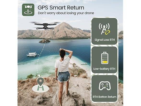 GPS Auto Return: GPS assisted flight, it can perform automatically return home when the drone lost signal, out of range or low power, never have to worry about flying it away