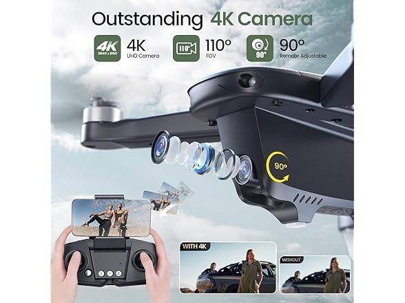 4K Ultra Clear Camera: 4K camera with 110° wide-angle and 90° adjustable provides a high resolution picture, enable to capture a perfect shot; 5GHz FPV transmission delivers a smooth and stable videos even in high-speed or strong-wind conditions