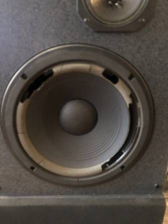 In good working condition, sound great, though need foam replacement around woofer. See pics. One speaker has chipped corner on outer case.