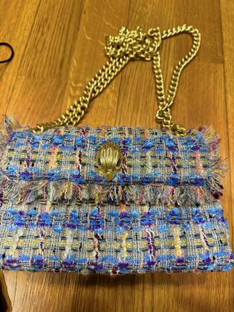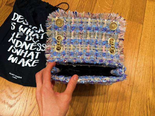 From Kurt Geiger London, the Lilac Tweed Mini Kensington Crossbody Bag features: