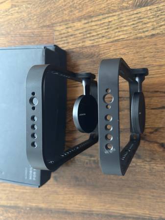 I have two (2) original model Moment brand metal Cage model iPhone mounts. Strong magnet, full metal construction, perfect condition really a great flexible way to add anything you need for iPhone based photography. Standard screw mount holes throughout able to mount lighting, sound, remote Bluetooth shutter, whatever your imagination can think of. All at the same time!