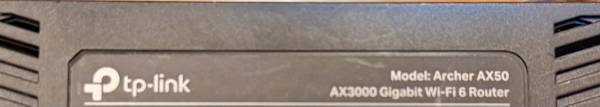 Model: TP-Link Archer AX50 Type: AX3000 Gigabit Wi-Fi 6 Router. Bought in 2021. Not used now as we moved. No power cord.