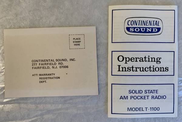 vintage 60s Continental Sound T-1100 Solid State Transistor AM Radio ($60)