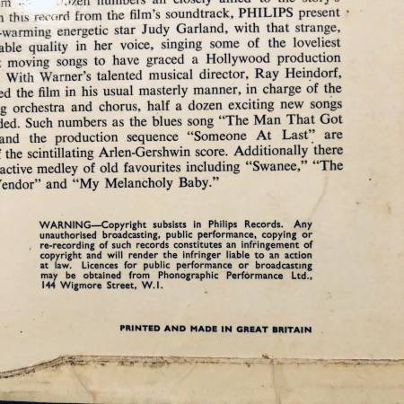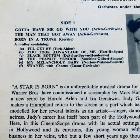 January 1955 Released UK LP Judy Garland: A Star is Born Musical Score