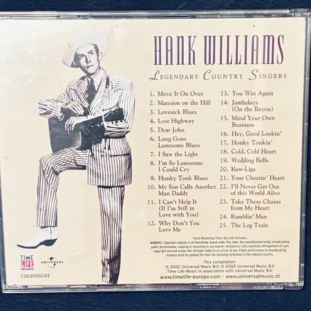 2002 Netherlands Universal Music / Time-Life Europe Legendary Country Singers Series Compact Disc The Country Music Hall of Fame Presents HANK WILLIAMS