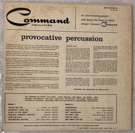 Provocative Percussion is a studio album by Enoch Light and The Light Brigade, also known as the Command All-Stars. It was released in 1959 on Command Records (catalog no. RS 806-SD). The album cover artwork is by abstract painter Josef Albers, like its predecessor.