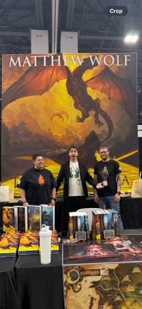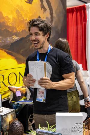 Job description: In short, your job will be helping with book sales. This includes keeping people engaged while I'm signing, keeping table organized, working a Square reader (I can show you how to do that, it's super easy), and tallying books sales are all helpful. Sometimes we have a line, so handing a book to me, stacking up "to-sign" books, anything like that is great. The big dragon behind me and I do most of the work, but someone willing to be personable with fans is a must.