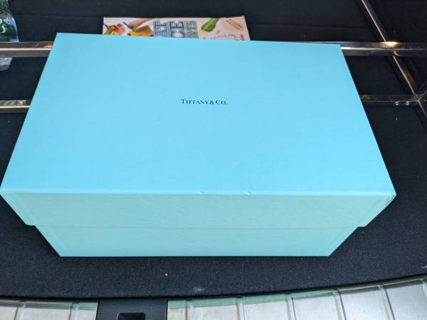 Empty Tiffany & Co. Blue Box Approximately 13" W x 8" L x 6.5" H. Condition is Pre-owned and in excellent shape. Please see all the pictures. I'm selling the empty box, with white the ribbon only. Box does not contain any jewelry, manuals, or other inserts. No rips or tears.