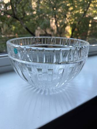 Have a beautiful Tiffany Cystal Glass Bowl for Sale. Bought as a gift but never gave it away. In original box and packaging. See Photos for details. Size: Approx diameter 10" , H 6"