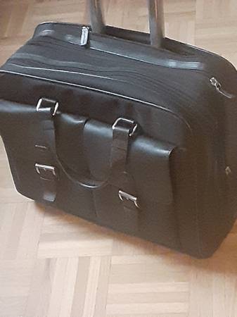 Business briefcase by JACK GEORGES. leather , BLACK with plenty of small pockets for phone , business cards , pens and more.NYC