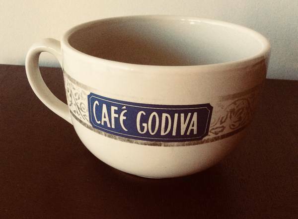 Beautiful Cafe Godiva large mug by California Pantry. Classic Ceramics. Dimensions: 8 x 8 x 4 inches. Free parking while picking up.