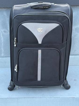 Cassini Black 20" Carry-On 360 Spinner Suitcase for Sale. Excellent condition. Multiple pockets. Dual Handles + Retractable Handle. Expandable zipper. x4 wheels (spinner suitcase). ✉️ Message only...