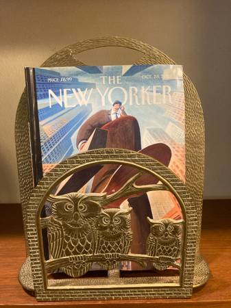 This vintage magazine -- or book -- holder can be moved around easily as it has a carry handle at the top. It's very nicely and sturdily made of a heavy-weight brass, and is a compact design with a small "footprint."
