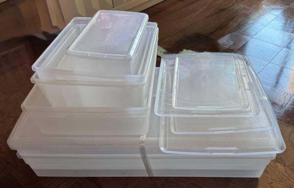1 Large Shoe Box 3 Sweater Boxes 2 Long Underbed Boxes 1 Boot Box 1 Tall Shoe Box All for $25.