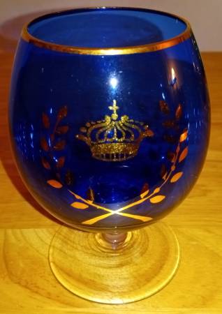 Five (5) Brandy Cognac Balloon Glasses $100 Cash Only Multi-Colored crystal glasses -- Cobalt Blue, Emerald Green, Amber, Topaz and Amethyst Gold Rim, Napoleon Crown and detailing No chips or cracks