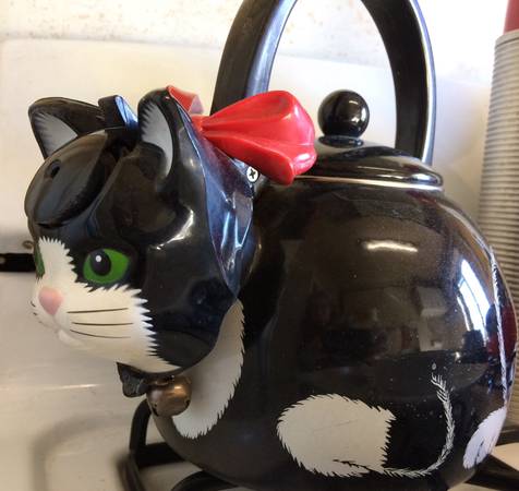 • a teapot that's cat-themed -- black and white -- just like Boots. SOLD