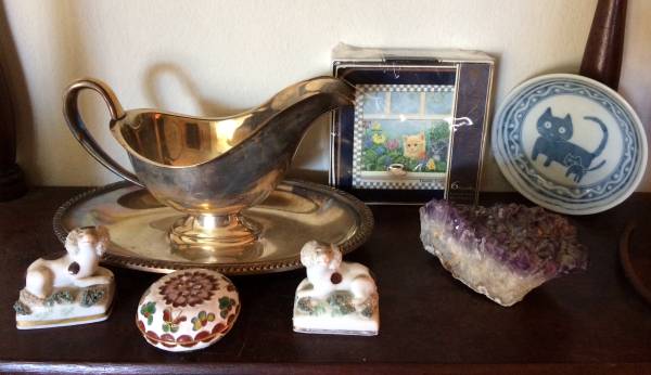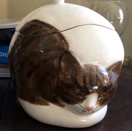 • a wonderful cookie jar (for humans!) in the shape of a napping feline. SOLD