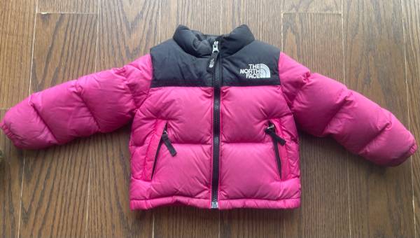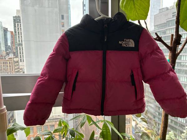 Selling a super cute The North Face puffer jacket for toddlers! It's a size 2T and features a stylish pink and black color block design. Perfect for keeping your little one warm and cozy!