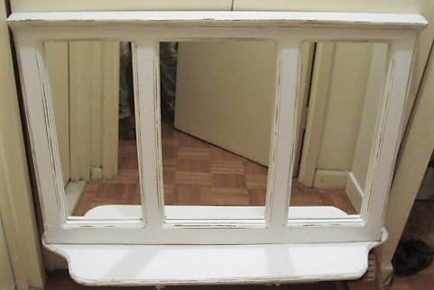 ONE 3 Pane Wall Mirror with Shelf - STARTING AT $25 FOR EACH PIECE Cash Only Wall mounted Mirror in a soft Shabby White Wood Frame Heavy weight mirrors are free of any cracks and chips. Soft shabby...