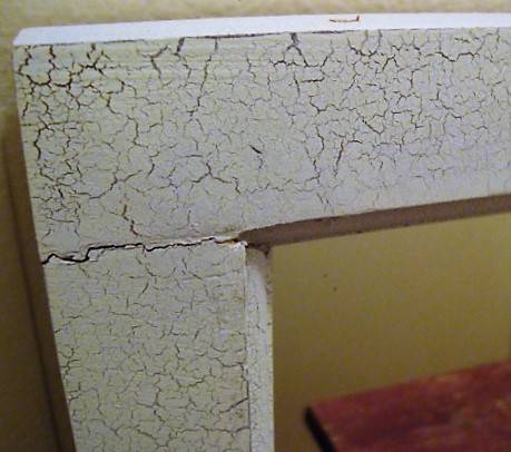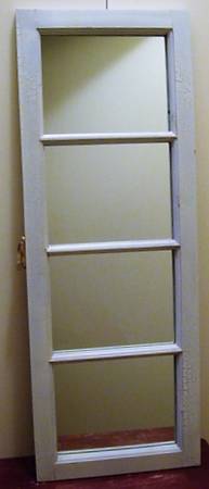 4 Mirror Panes surround by a crackled / distressed Window frame with sash (hardware).
