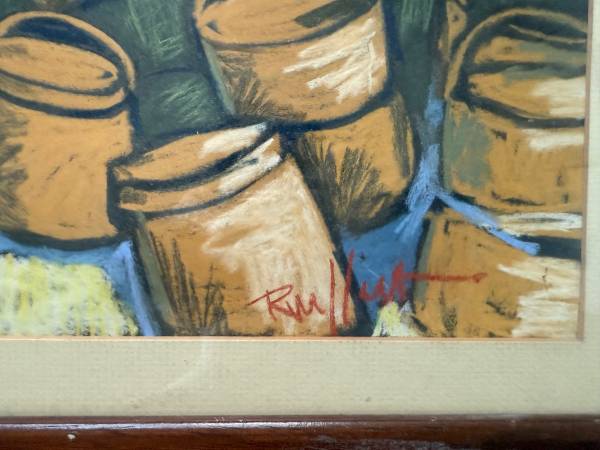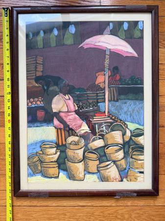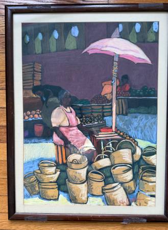 Original Pastel Drawing Portrait of Female Vendor Selling Baskets at an Outdoor Marketplace Signed by Artist. But I Can’t Read Signature (See Photos For Signature & Measurements) Framed