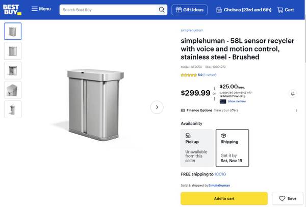 Currently $300+ tax, new in-stores, at places like Simplehuman.com and Best Buy (see attached screenshots).