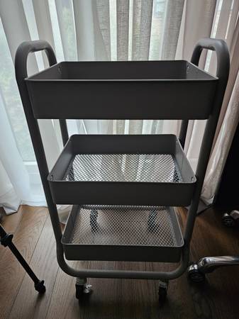 Utility cart can be used for beauty items, tools, or whatever requires quick grab and mobility. Wheels can be locked.