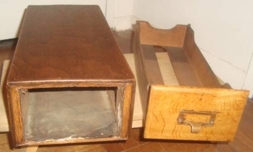 Vintage Single Drawer Library Card Catalog Cabinet $75 Cash Only Dovetail Drawer Original Brass pull with card holder hardware. Use for recipes, scarves, jewelry, flatware, tools and hardware, art...