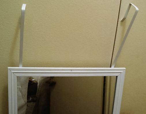 White Frame Full Length Mirror with Over the Door Hooks $15 Cash Only Easy to hang Measurements: · Height: 49 - 1/2" · Width: 13 - 1/2" Height with hooks: 56 - 1/2"