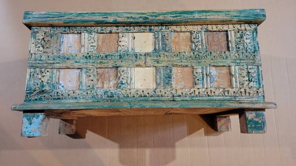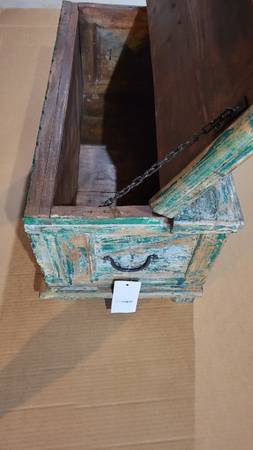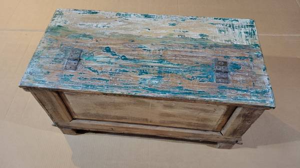For your consideration is a beautiful hand carved solid wood storage chest in a blue/green/natural tone. This bohemian style piece is unique and will add flair and character to any space. Imperfections from reclaimed materials and aging techniques are seen throughout making this a one of one.