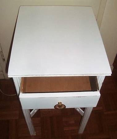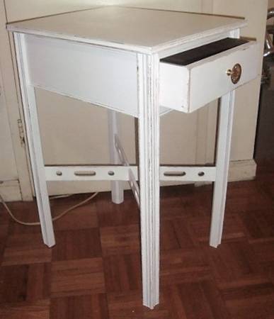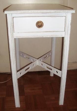 Accent Table with Reticulated Stretchers $60 Cash Only Supported by four fluted – reeded legs Solid Wood with soft Shabby Finish Perfect to keep everything within arm’s reach next to a recliner,...