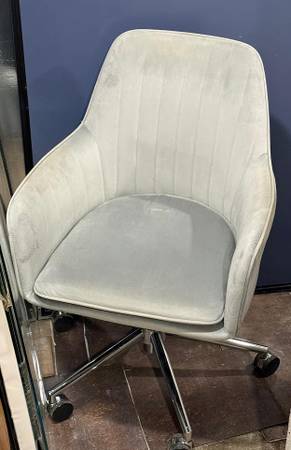 Anita Velvet Heather Grey Cushioned Office Chair for Sale. In excellent condition. Removable seat cushion. Chrome base. Hybrid wheels. Adjustable height level. >>>Message seller if...
