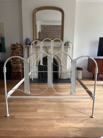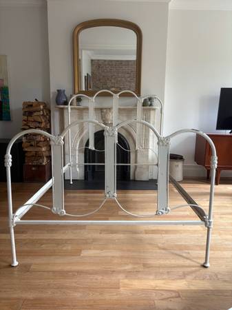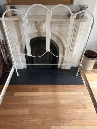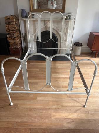 The bed is a standard full size and comes complete with all original parts, making it both a functional and collectible piece. The gently aged finish adds vintage appeal, while the pure iron frame allows for easy refinishing or repainting to suit your personal style.