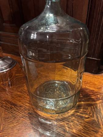Antique glass 5 gallon jug from Italy is in good shape. This has no chips or damage to it. This can be used for water or just for decoration.