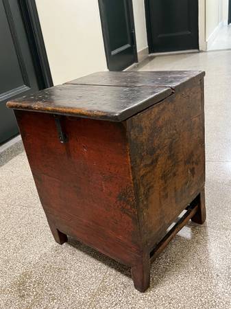 Unique Antique Tansu Chest, also called Semi-Closed Chest. Originally used to store rice. Now perfect as a side table with storage. The top is in 2 parts - the front half lifts up to access the...