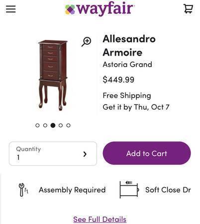Astoria Grand Allesandro Armoire for Jewelery for Sale.
