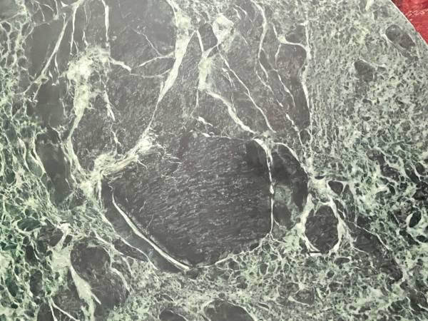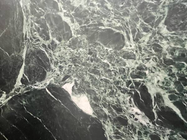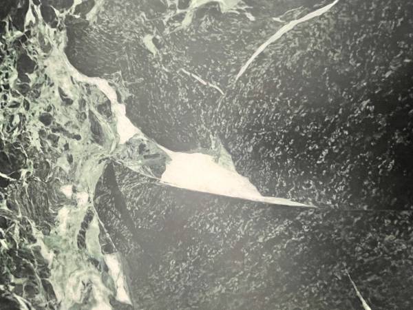 A dreamy field of green to make everyone green with envy. Metaphors aside, I struggle to find the words to describe the sensations I feel in the presence of this table. Custom ordered in Knoll’s most premium marble option (Verde Alpi) and featuring a kaleidoscopic tapestry of green, black and white veining, this oval tulip table comes in Knoll’s elegant satin coated finish (honed / matte), measures 84 inches long and 47 inches wide, and seats up to 8 people. Designed by the one and only Eero Saarinen in 1957, this is a genuine Knoll edition, not a reproduction. Fully labeled and stamped with two separate decals in addition to the metallic KnollStudio plate under the tabletop and a Knoll engraving under the base. Pristine condition.