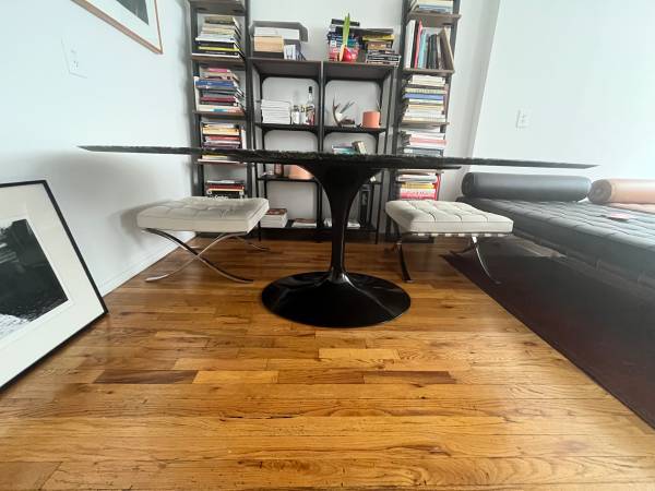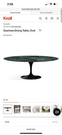 This exact configuration would run you $15,895 plus taxes and delivery (total of $17,740) and there is a 5+ month long wait time, so you would have to wait until Christmas at the earliest. Take it home today for a fraction of the price. Thank you for looking and feel free to ask any questions. For more information, please see: https://www.knoll.com/shop/en_us/dining-dining-tables/saarinen-dining-table-oval/100193390.html. And please do yourself a favor and watch this video for more about Knoll’s gorgeous production process: https://vimeo.com/488597666. 😍😍😍