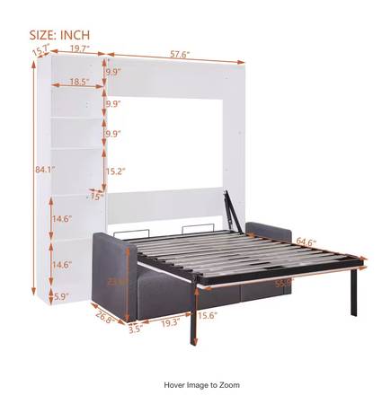 Couch (only) for full size murphy bed. Murphy bed will go on top of it when unfold. Modular. Couch easily dissembled into 3 part (no tools required) and could be cared by one person. Could be...