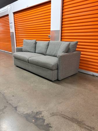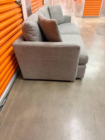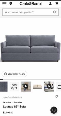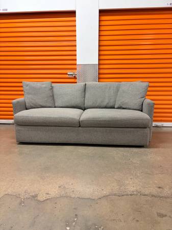 This 2018 Crate & Barrel Lounge sofa is in pretty good condition. It has No rips or tear with minimal to no marks. Its grey mossa chenille fabric feel very plush and premium with its lounge deep legroom and its design looks elegant and contemporary. This sofa is perfect for any room sized living space.