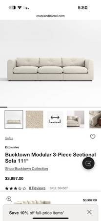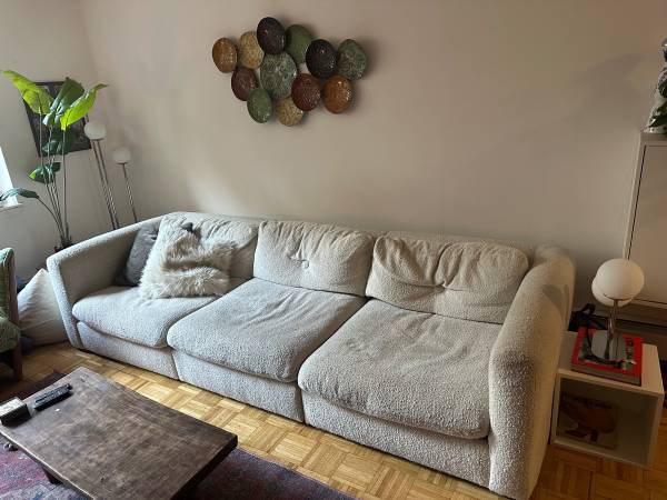 1 year old amazing modular boucle couch for sale. Super comfortable and beautiful. Avaliable for pick up between the 27th till October 30th from Soho.