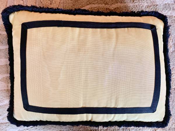 Reverse side has same fabric as the front border’s black fabric : 14" x 7.5": $40.