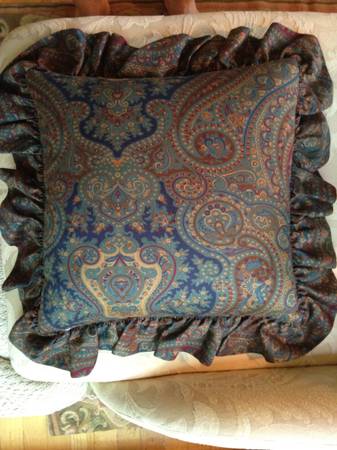 - Ralph Lauren Paisley blue square pillow with ruffle border. Down filled insert: price reduced: $ 150.