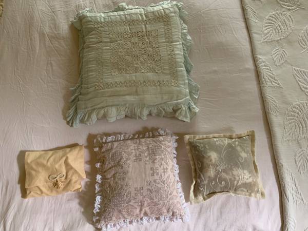 - Assortment of antique linen, embroidered, cotton and lace pillows. Priced individually, or bulk price for all is negotiable.